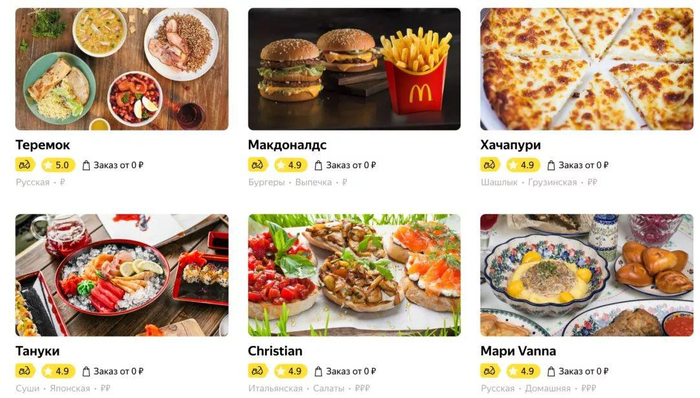 ●Yandex.Eda平台上的入驻商家 / 官网截图