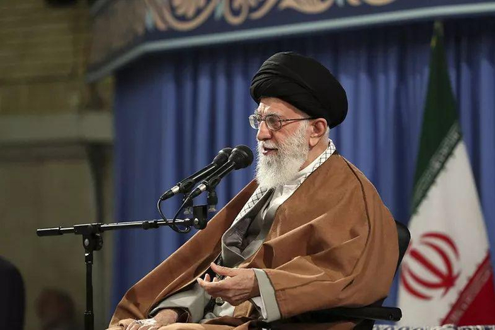 4月24日,在伊朗首都德黑兰,伊朗最高领袖哈梅内伊发表讲话。新华社/美联