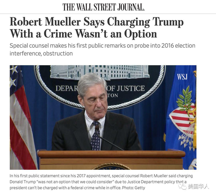 穆勒公开讲话:无法确认总统无罪;俄罗斯威胁不容忽视