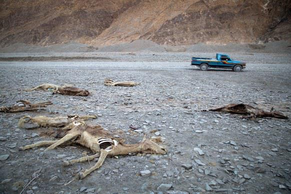 在souri的图片中,有路旁被烧毁的车残骸;累死路上被抛尸路旁的骆驼残骸;有失去丈夫和兄弟的妇女;有走私客开着挡风玻璃被子弹穿透的开车继续前进。