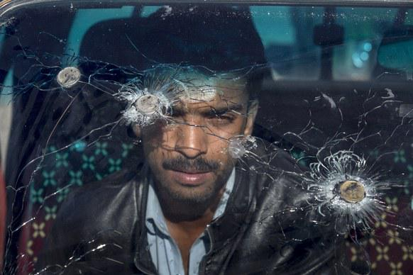 Souri特地解释这张“挡风玻璃被射穿“的照片。“Abu Bakr (图片中的男子)是一名文盲农民,他因为干旱和气候变化失业,之后开始从事燃料走私,当他走私时,他的车被警察开了三枪,每次他都活了下来。在最后一次射击中,四颗子弹击中了他的挡风玻璃。”