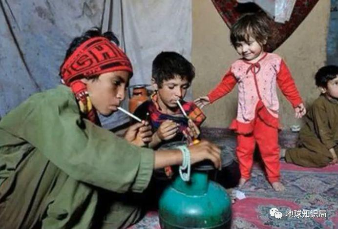 阿富汗大人会带小孩吸毒