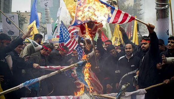2013年11月4日,伊朗民众焚烧美国国旗,纪念1979年伊朗人质事件。图片来源:视觉中国