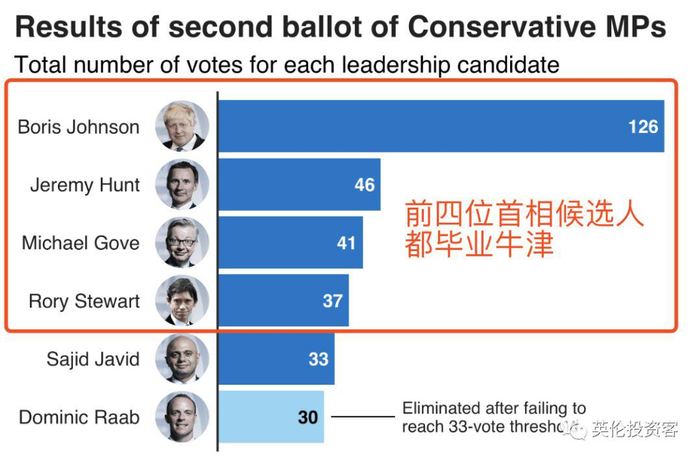 很有意思,最开始的十名英国首相候选人中,七名毕业于牛津,且都是男性,另有一位男性是巴基斯坦裔的贾维德,他没进过牛津,另外两位是女性,也没有进过牛津。