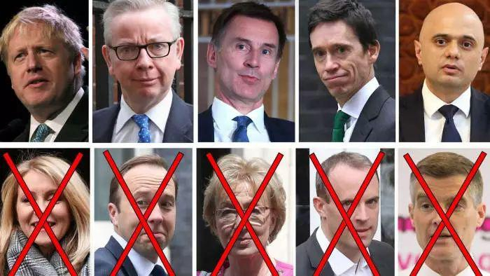 到汉考克退选、拉布出局后,剩下的5名候选人,变成了4位牛津毕业生,外加非牛津的贾维德,全部是男性。