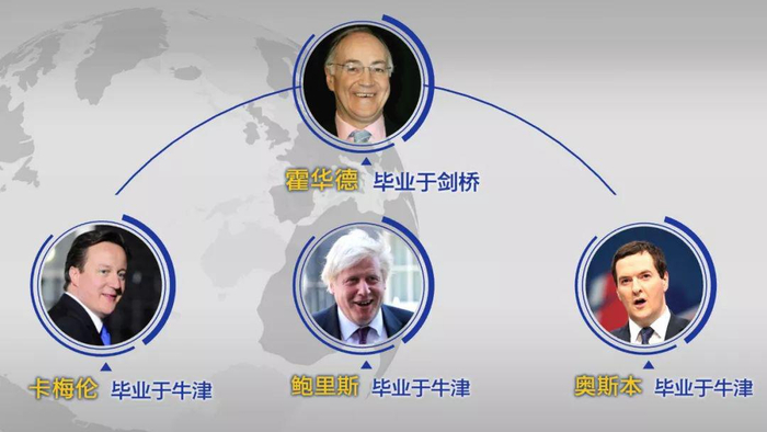 从2010年开始,牛津帮已经垄断了近10年的英国首相之位,从PPE(哲学、政治学、经济学专业)专业的大卫·卡梅伦,到地理系的特蕾莎·梅,再到近来呼声最高的古典学毕业生鲍里斯·约翰逊。