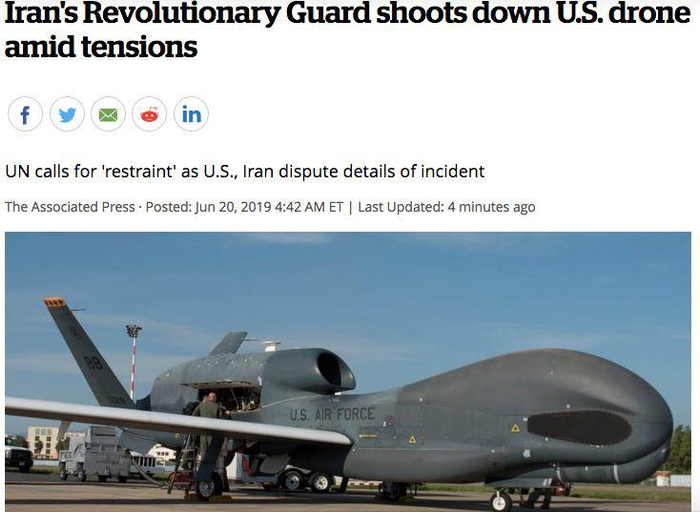 然而,美国的威胁还没起到作用,伊朗就把它的无人机给炸了……剑拔弩张,瞬间令人尴尬的说不出话来。