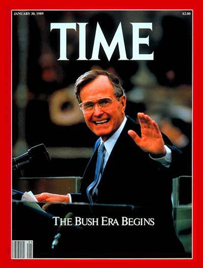 30年前同样是大选年,特朗普的偶像里根总统离任。1月20日,老布什接任总统。1月30日的《时代》封面:布什时代开始。那一年,老布什3次登上封面。