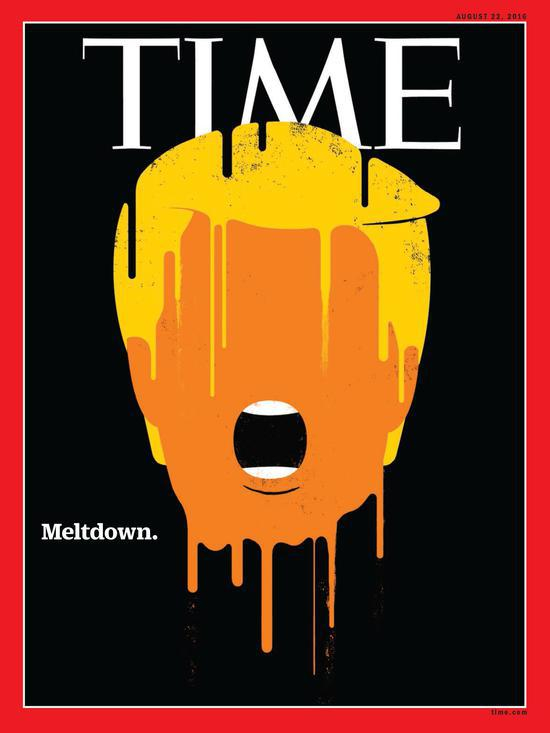 2016年10月13日,“彻底熔化”。 越来越多的争议言论,在辩论上和希拉里的冲突,更被曝出针对女性的丑闻。这点燃了共和党对特朗普的怒火。这时候,民调和舆论开始“预测”特朗普的失败。《时代》显然也受到了影响。