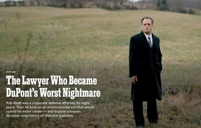 2016年1月,《纽约时报杂志》发表了一篇轰动全美的深度调查报道,讲述辛辛那提一名律师耗上自己职业生涯和化工巨头杜邦死磕16年的经历。