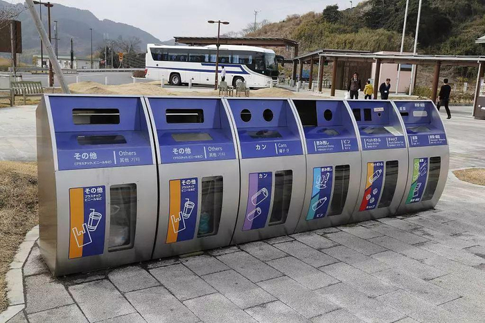 日本名古屋至东京高速路休息处的分类垃圾箱。/视觉中国