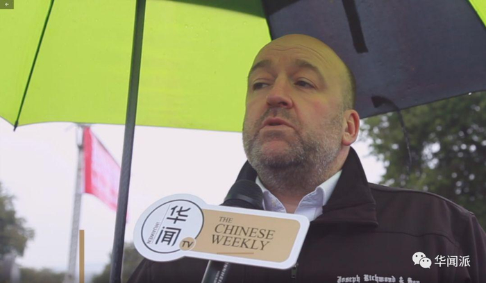▲英国北部华人企业家协会会长戚勇强接受华闻君采访(视频截图)