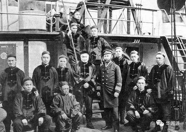 ▲北洋水师赴英接舰时与英国海军军官的合影