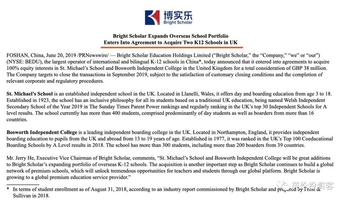 事实上,在收购这两所学校前,博实乐在去年底已经买了一家英国私校。