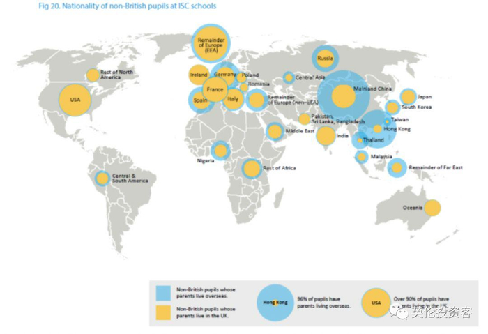 根据英国私立学校协会(ISC)的数据,英国私校生源来自欧洲邻国、中东、远东、非洲以及美洲,真正遍布世界各地。