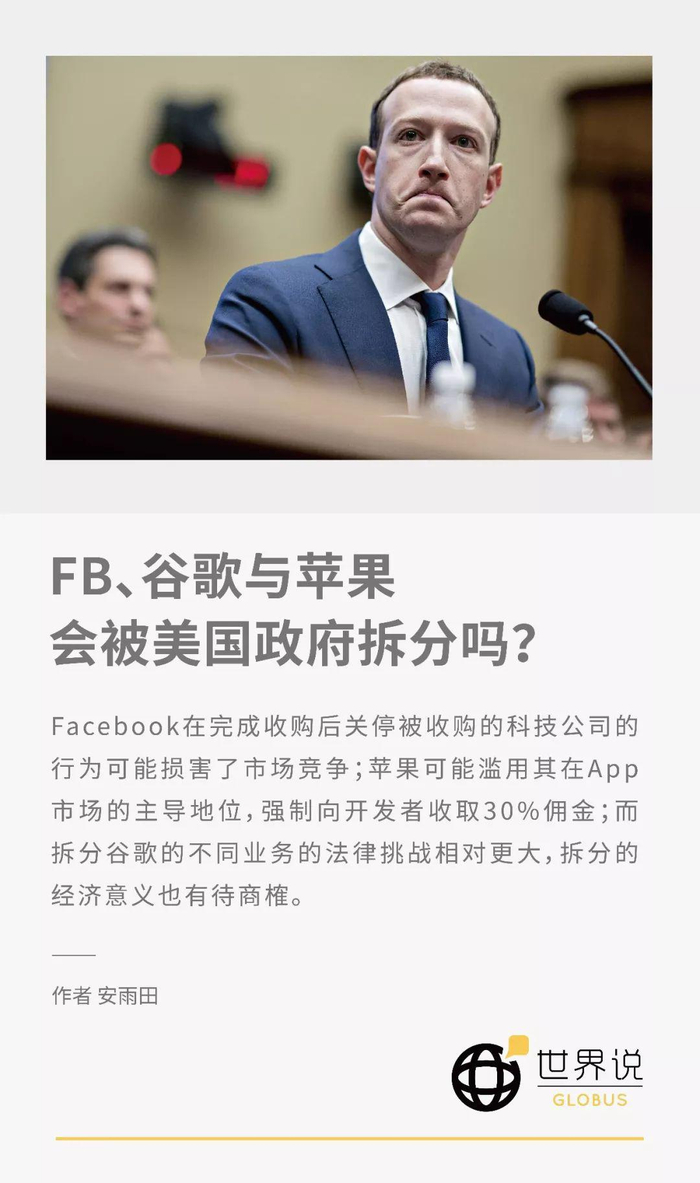 FB、谷歌与苹果会被美国政府拆分吗?