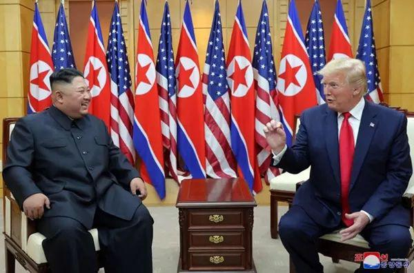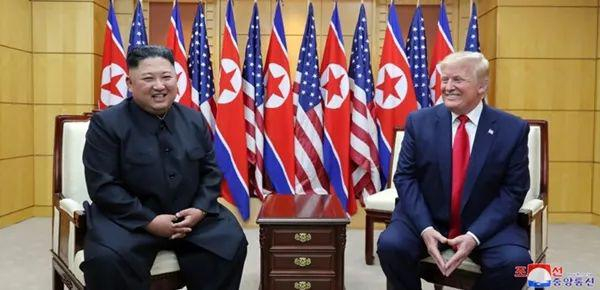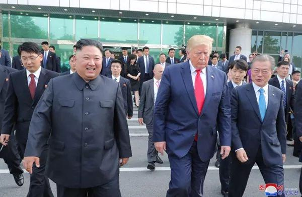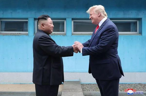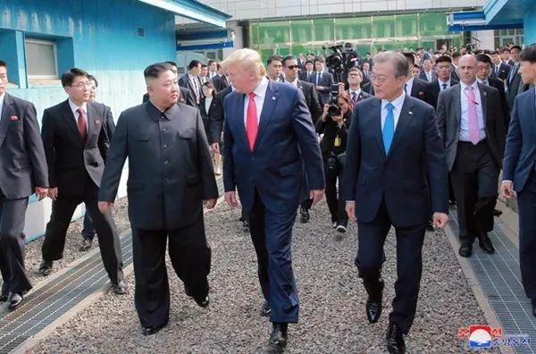 特朗普率先到达分界线,等着金帅走过来