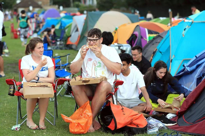 而每年温网前,球场外就会支起帐篷,彻夜排队的球迷都是场外的一道风景。