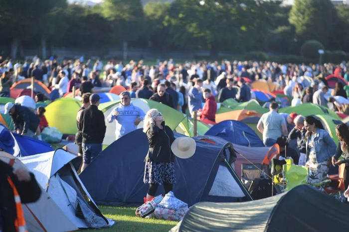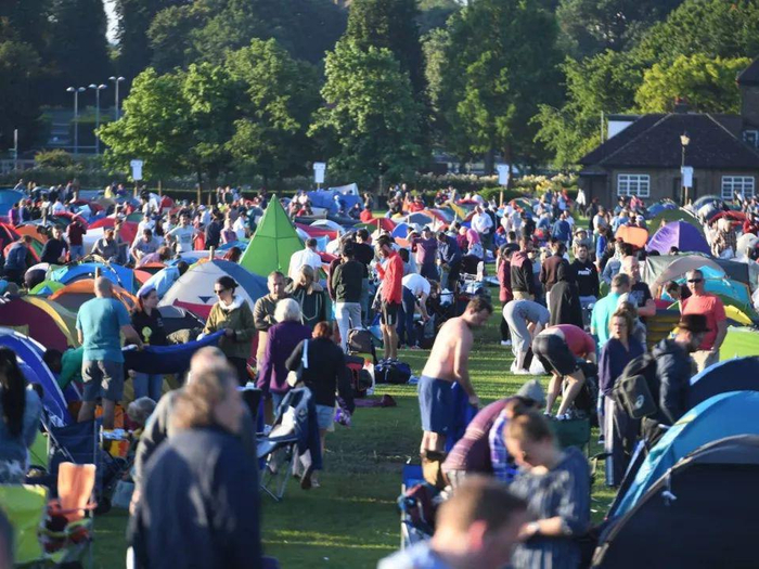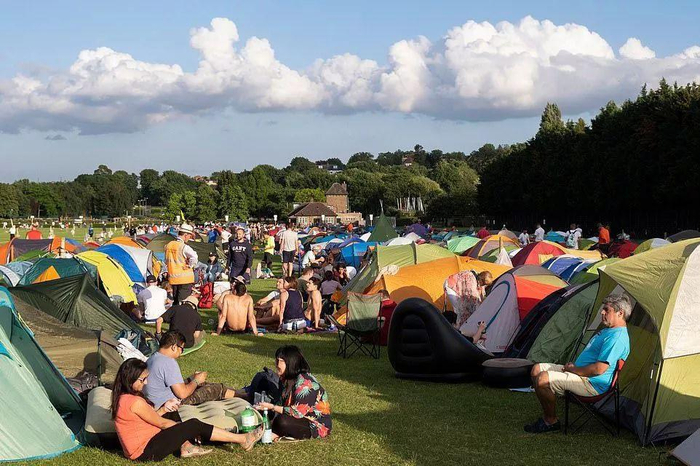 自上周日以来,这个著名的伦敦西南部场馆外就到处都是帐篷,但所有的帐篷都整齐地排成一排。