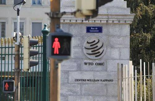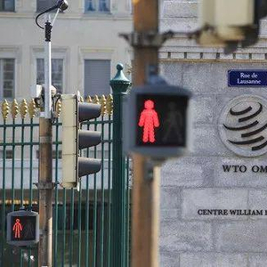 这是4月2日拍摄的位于瑞士日内瓦的世贸组织总部大门上的世贸标志。新华社记者徐金泉摄