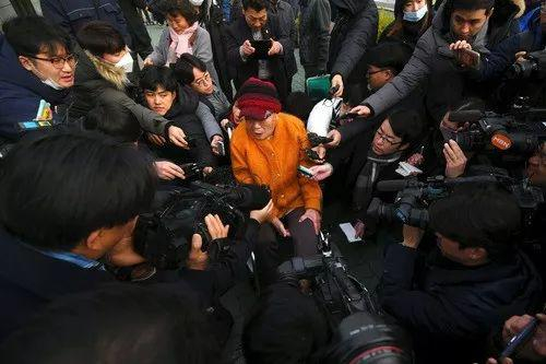 2018年11月29日,在韩国首尔,一名二战时期强征劳工的韩国受害者(中)接受媒体采访。新华社/法新