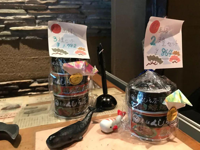 这是记者7月5日在日本东京一家餐馆拍摄的鲸肉罐头。