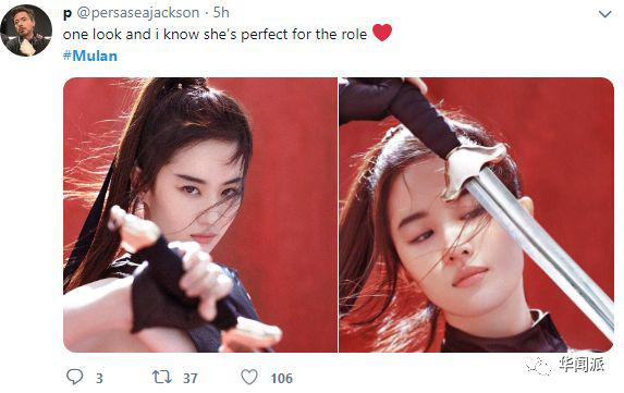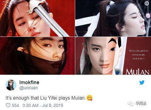 不过在推特上,外国网友对刘亦菲的颜值还是非常服气。不少迷弟迷妹表示,这就是我心目中的花木兰啊!