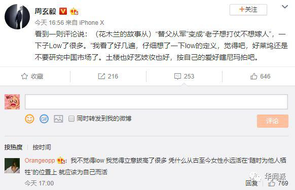 但在这条微博下,获赞最高的评论写道,“凭什么从古至今女性永远活在‘随时为他人牺牲’的位置上”?迪士尼对《花木兰》的改编,体现了女性自我意识的觉醒。