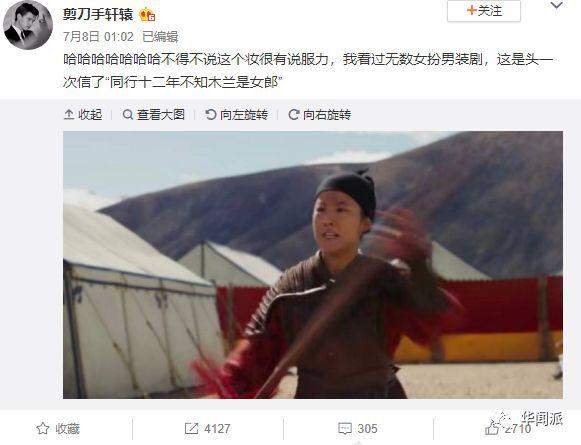 而看了预告片的几个镜头后,有微博用户表示,刘亦菲看起来像黑版燕小六,“看过无数女扮男装剧,这是头一次信了‘同行十二年,不知木兰是女郎’”。