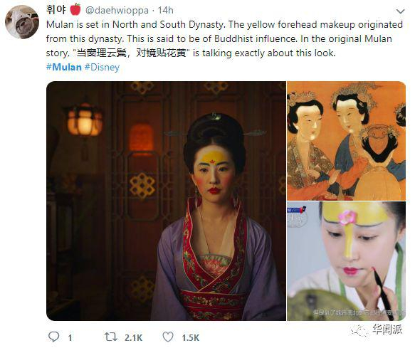 上了微博热搜的#刘亦菲妆容#,在推特网友看来也是完美还原了中国的古典妆面。