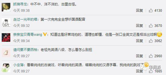 在微博上,中国网友关注的重点在于,花木兰竟然说英语?古装戏演员全部英语八级让人很出戏啊!