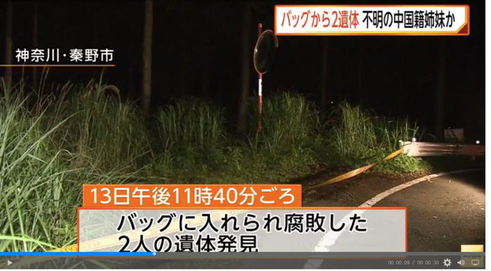 近几年已经不止一起的中国公民在日本遇害案件发生。2017年7月,一对中国籍姐妹在日本神奈川县惨遭杀害并抛尸的案件牵动众多华人的心。遗体在山林中被发现,遗体当时被装在旅行箱中。