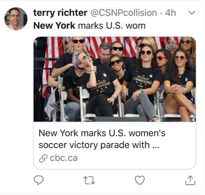 现在女足赢了!到此文发出为止,纽约市邀请了女足队,国会邀请了她们,还有很多地方对她们发出了邀请,就是没看见白宫有动静。该不是又因为Rapinoe说不会去白宫,总统就食言了吧?这样的事情以前发生过很多次了,小心眼的特朗普还总是不忘说是我先决定不邀请的。
