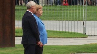 默克尔的健康,肯定遭遇了某种问题。但即便如此,她仍必须坐着出席欢迎仪式,也可见她背负的巨大压力。