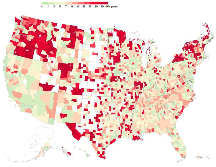 ●美国各地洪水地图的过期时间,有些地图已经过期超过四十年 / Bloomberg