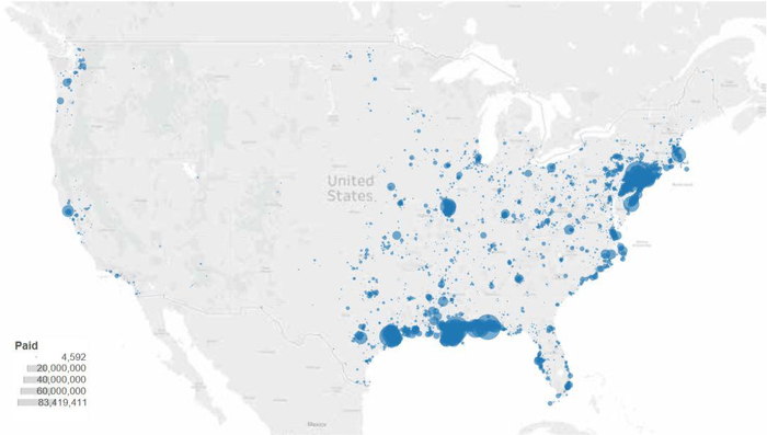 ●严重反复理赔的房屋及其理赔额在全国的分布 / NRDC