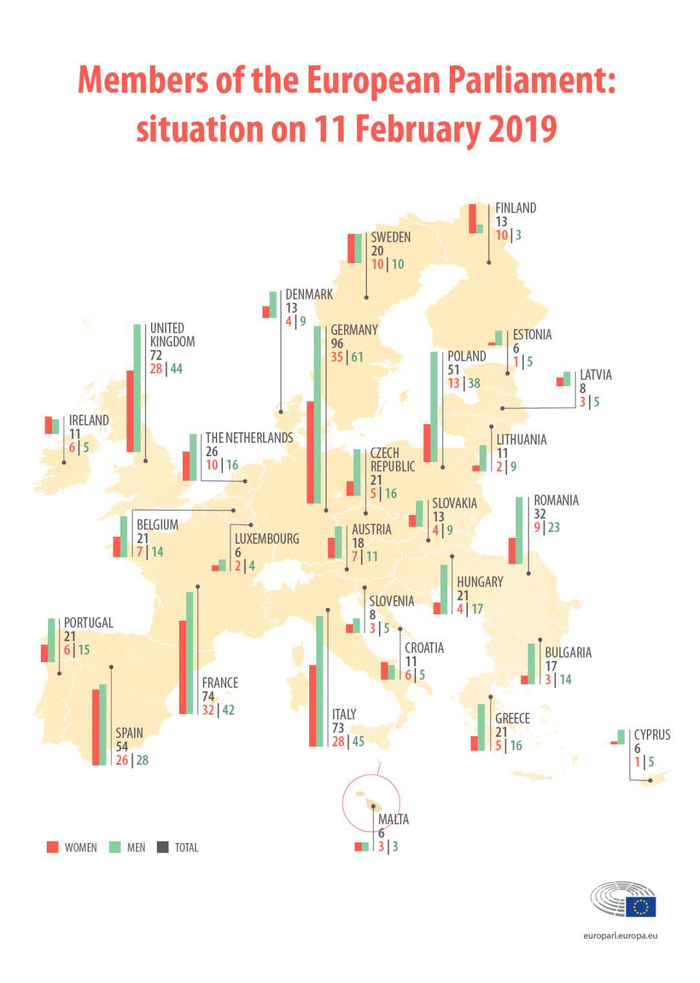 不过,至少在性别的维度上,2019年的欧洲议会选举比2014年要“进步”许多。