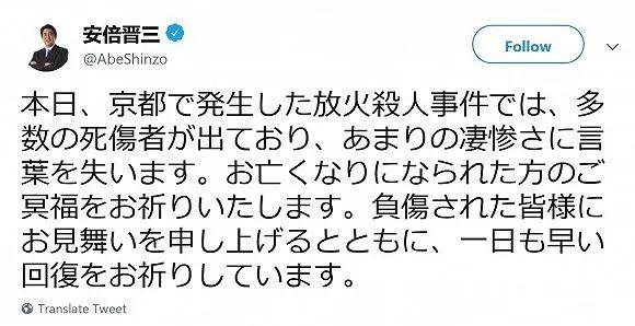 日本首相安倍晋三发推称,“对此惨状无以言表,愿死者安息,向伤者致以慰问,并祝早日康复”。