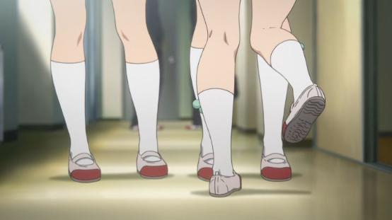此外,京都动画的作品尤其着重描写少女的腿部。在《轻音少女》等作品中,画师频繁用腿部动作特写来展现主人公的性格和情绪变化。京都动画作品中的主人公通常有一双圆润丰满的腿,这种充满肉感的腿被称作“京都腿”,也是京都动画的一大标志。