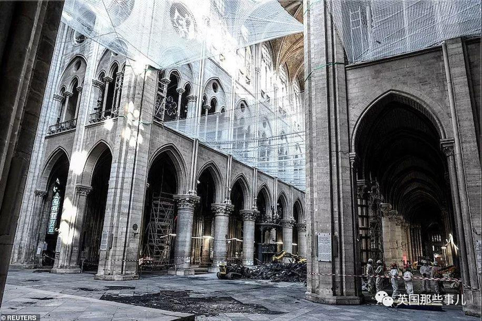 虽然教堂的木质屋顶大部分都已经被毁,专家们仍小心翼翼地行动,因为圣母院剩下的部分,仍没有彻底排除进一步垮塌的可能,预防坍塌掉落的防护网随处可见……