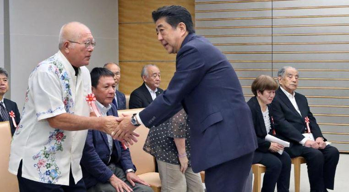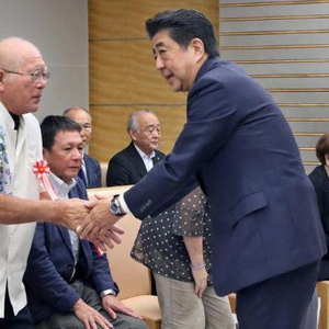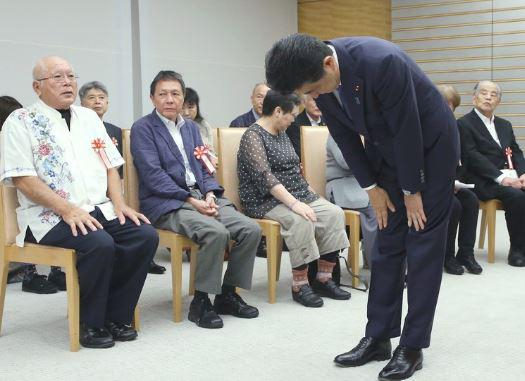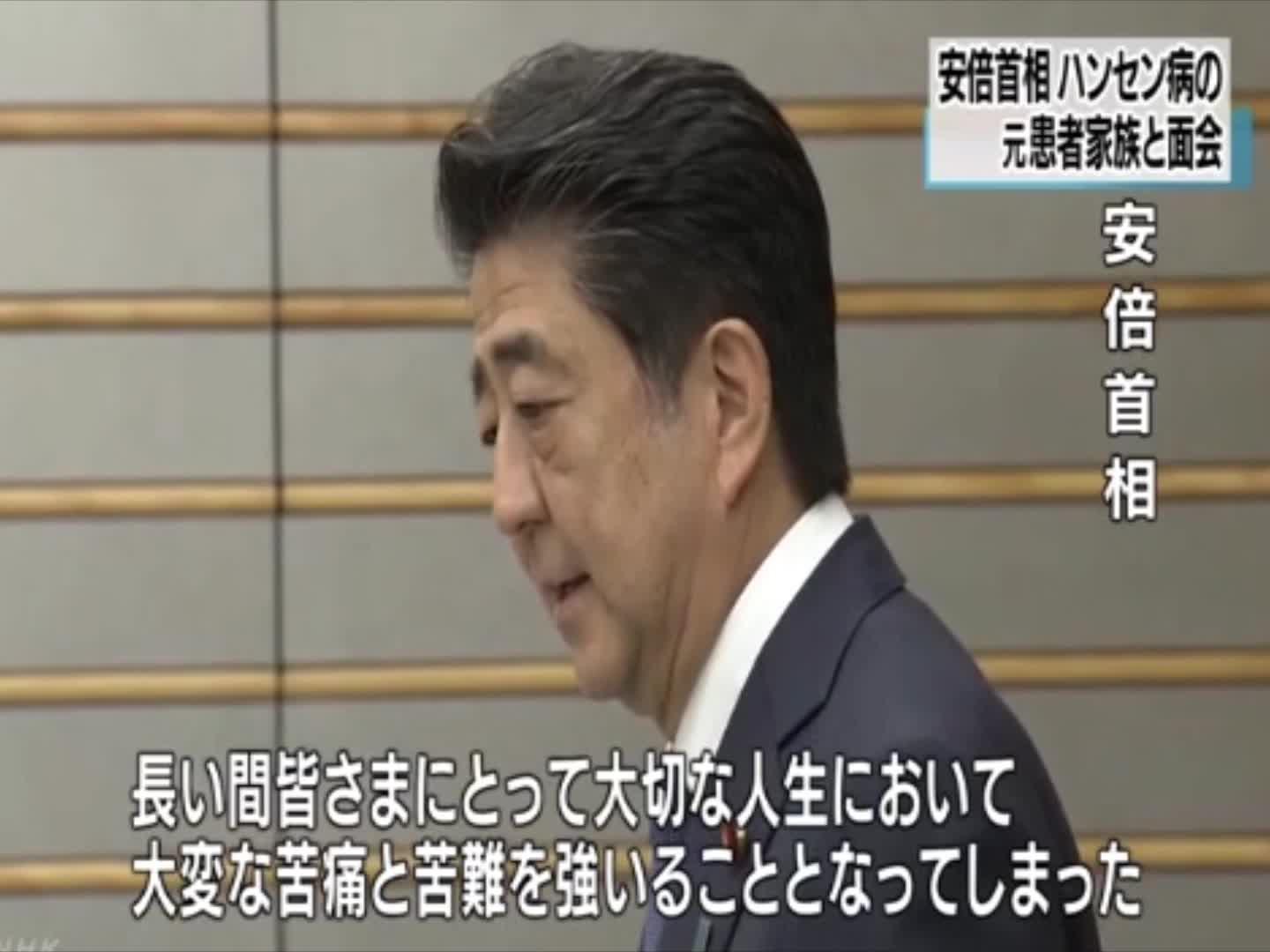 安倍会见原麻风病人家属 多次鞠躬说“对不起”