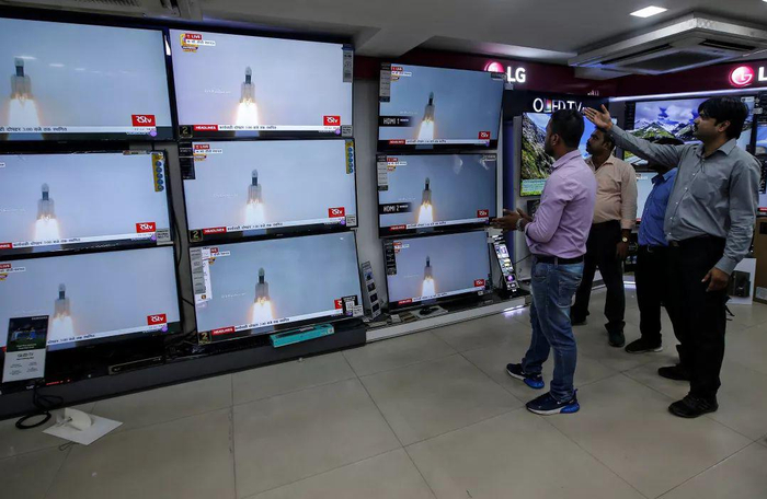 ●印度民众观看“月船2号”发射直播 / 视觉中国