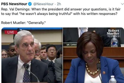 穆勒居然回答:“总体上如此。” —— 明示特朗普在书面回答问题时满纸谎言。