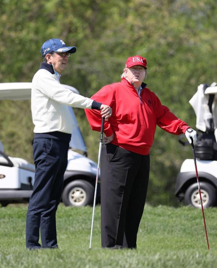 特朗普于2018年11月和2019年5月两次访问日本,两次安倍都特地安排了高尔夫行程。还特地邀请日本知名职业选手一起“陪玩”。