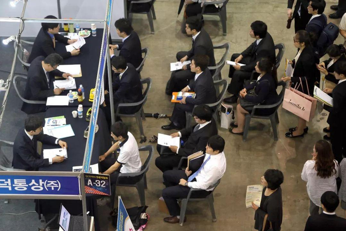●2014年,韩国釜山的一次招聘会中,正在等待面试的求职者 / 视觉中国