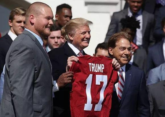 去年4月,阿拉巴马州橄榄球队前往白宫做客时,曾送给特朗普一件印有17号和特朗普名字的球服。QAnon阴谋论者认为,这件球服完美证明了Q的影响力。