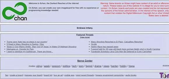 8Chan论坛到底是一个什么样的论坛,网站首页的介绍语给出了明确答案:“欢迎来到8Chan,互联网的最暗层。”
