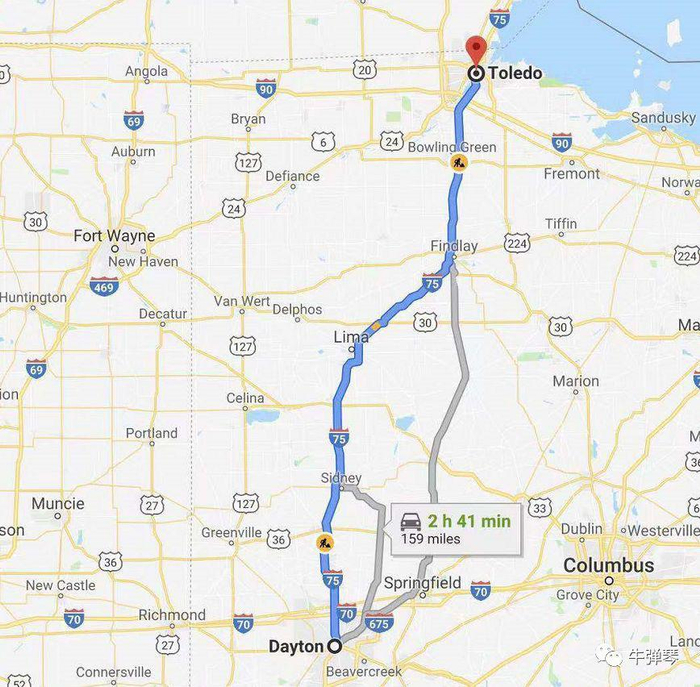 要知道,虽然都在俄亥俄,从代顿开车到托莱多,也得2小时41分钟。