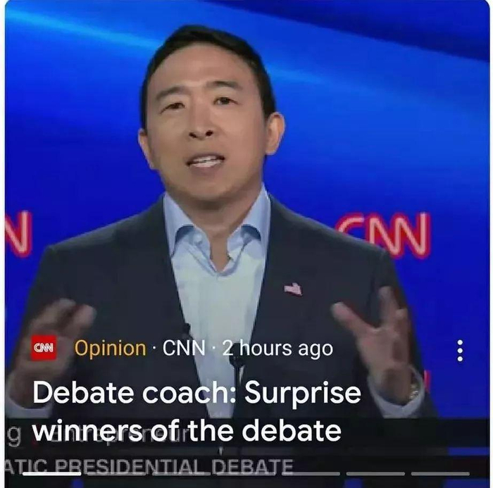 他做到了!7月31日,在CNN举行的第二场辩论大会上,他的表现如此出色,事后媒体蜂拥而至争相报道,热搜、人气和杨帮成员飙升,风头一时无二。对杨粉来说,最大快人心的,莫过于他的政纲和实力得到了充分的曝光,用中国人的话说“干货!”