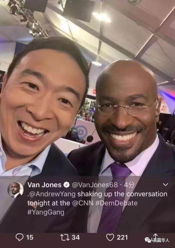Van Jones发推说杨安泽在民主党的辩论会上引导、纠正了话题。